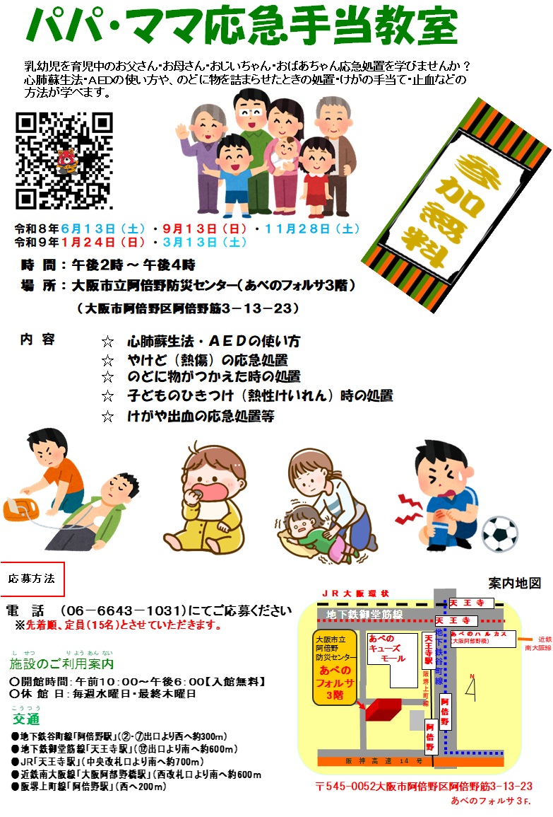 お問い合わせ先:大阪市立阿倍野防災センター TEL06-6643-1031